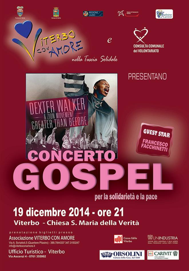 L’associazione Viterbo con amore invita al Concerto per la Solidarietà e la Pace che si terrà venerdì 19 dicembre 2014 alle ore 21 presso la Chiesa di S.M. della Verità a Viterbo ‚ Viale Raniero Capocci – Piazza Crispi.