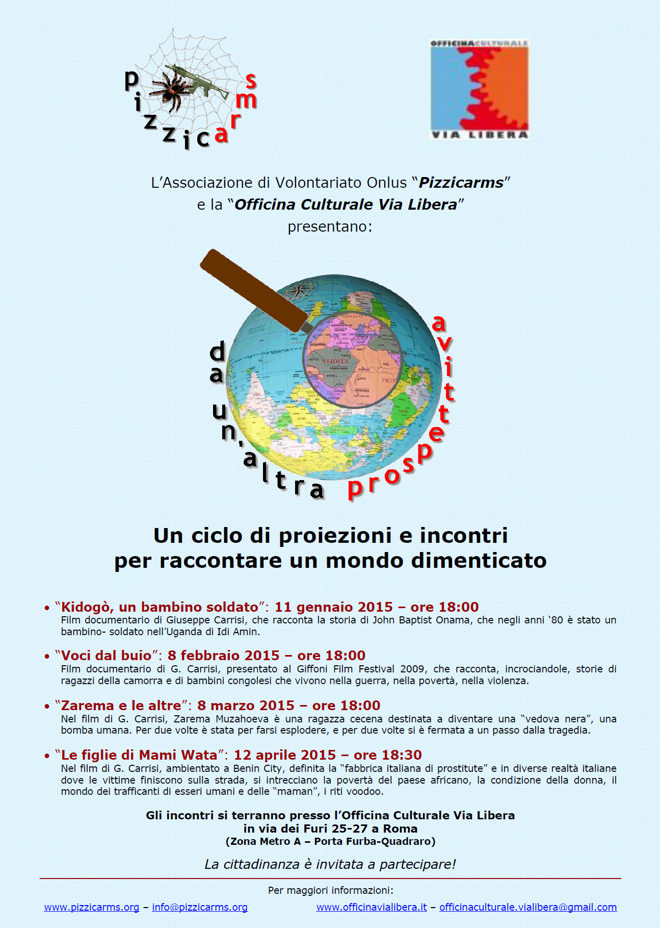 In partenza da gennaio fino ad aprile 2015 Da un’altra prospettiva‚ il ciclo di quattro proiezioni organizzato dall’associazione Pizzicarms‚ in collaborazione con Officina Culturale Via Libera.