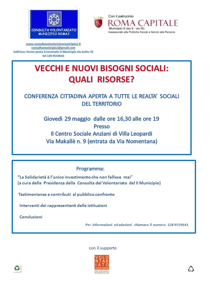 Convegno Vecchi e nuovi bisogni sociali: quali risorse