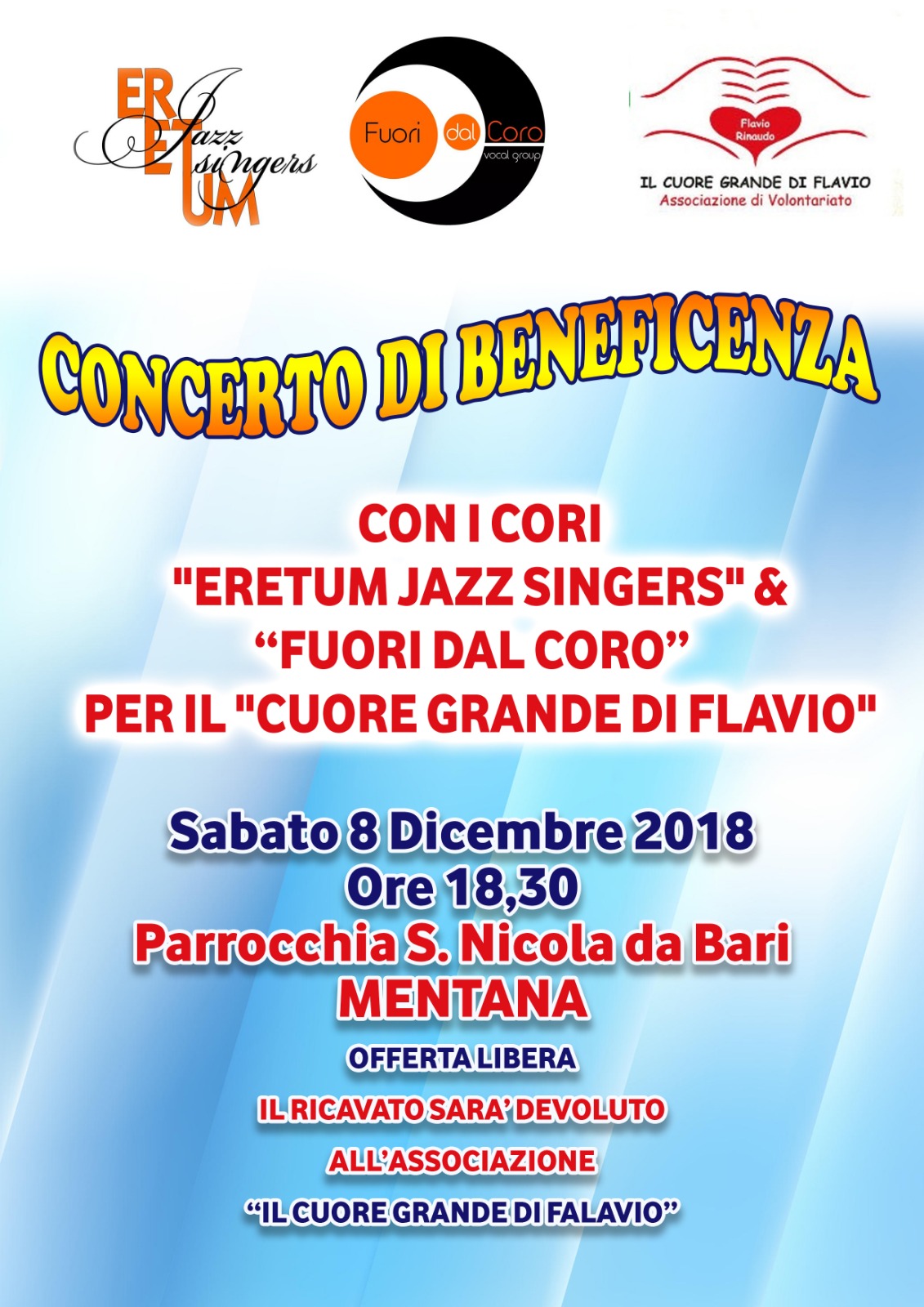 Del concerto di beneficenza che si terrà l’8 dicembre 2018 organizzato per il Cuore Grande di Flavio