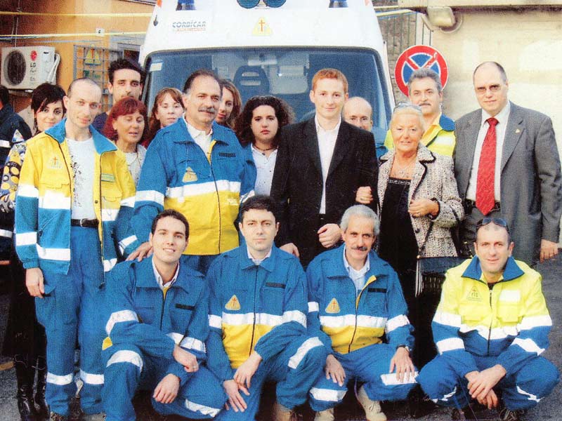 I volontari davanti all’ambulanza donata in memoria di Alessandro Pelagagge nel giorno della sua inaugurazione