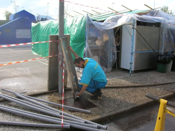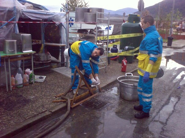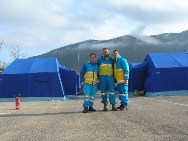 Volontari accorsi in aiuto a Coppito, in provincia di L'Aquila, nel periodo post terremoto