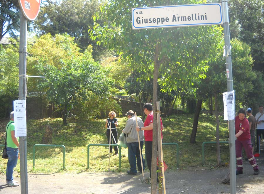 Volontari dell'associazione puliscono diverse aree verdi e vie del quartiere Colle di Mezzo, in occasione della giornata dell'ambiente, di maggio 2012, promossa dall'associazione.