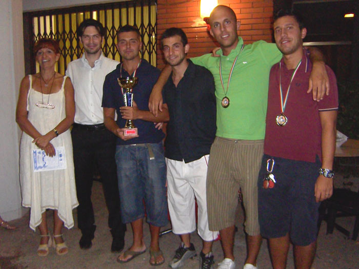Foto di gruppo per alcuni dei volontari dell'associazione in occasione della premiazione del Torneo di Calcetto, 18 luglio 2008.