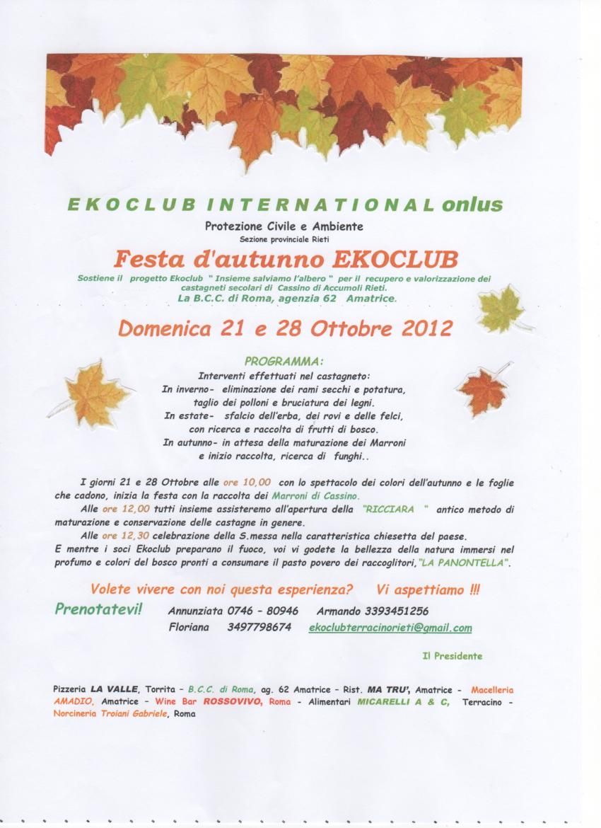 Si svolgerà a Cassino una frazione del Comune di Accumuli in provincia di Rieti domenica 21 e domenica 28 ottobre 2012 la Festa d’autunno dell’associazione Ekoclub International Onlus.