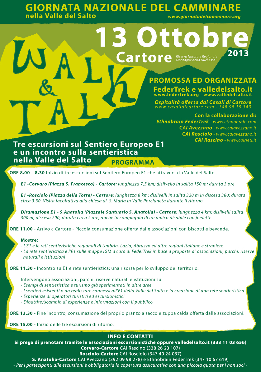 L’appuntamento è per domenica 13 ottobre 2013 con l’iniziativa Walk & Talk.
