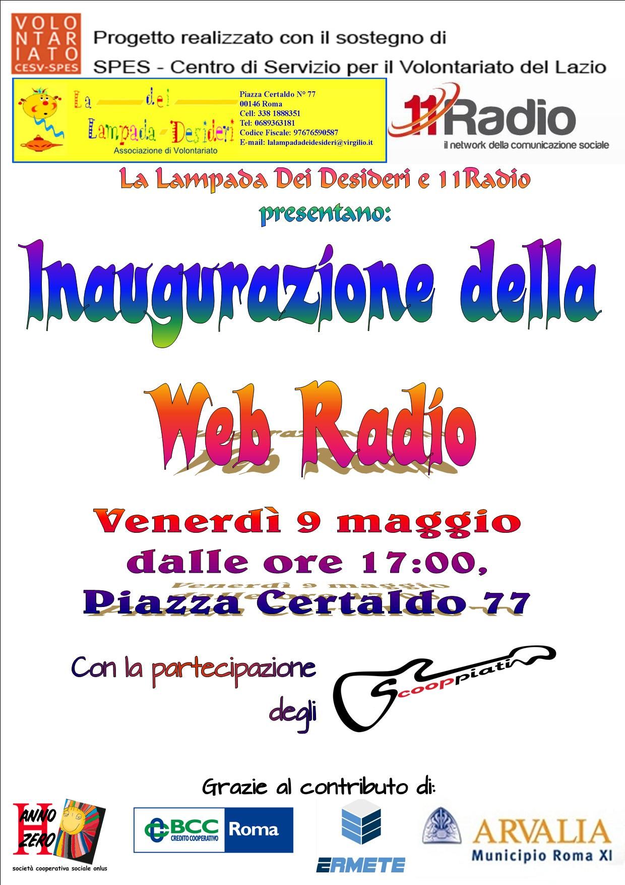 Venerdì 9 maggio 2014 ci sarà l’inaugurazione ufficiale della Web Radio di La Lampada Dei Desideri e 11Radio‚ il network della comunicazione sociale. L’appuntamento è dalle ore 17 a Roma‚ in Piazza Certaldo 77.