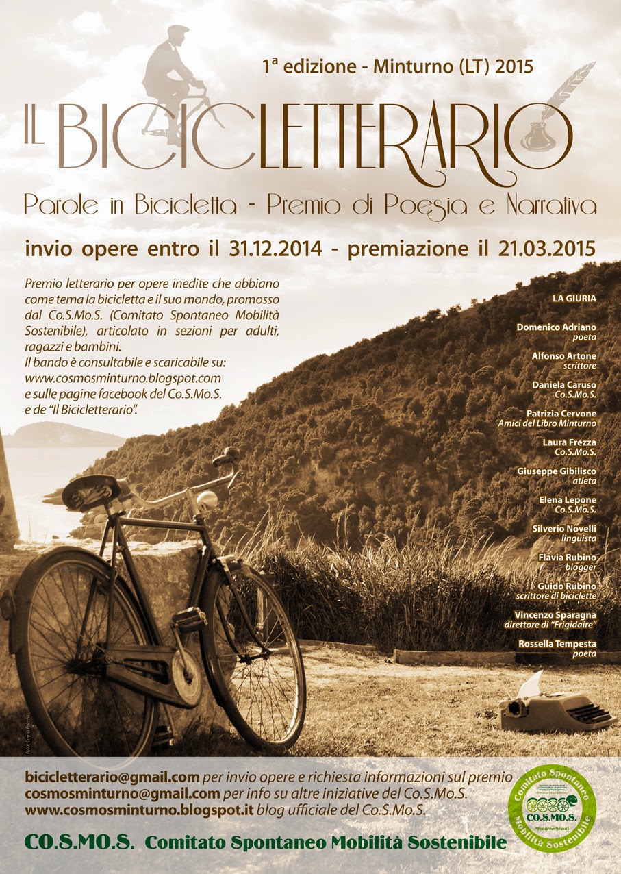 E’ partito il 28 ottobre Il BicicLetterario – Parole in Bicicletta‚ la prima edizione del Premio nazionale di poesia e narrativa organizzato dal Co.S.Mo.S – Comitato Spontaneo Mobilità Sostenibile sezione di Minturno–Scauri.