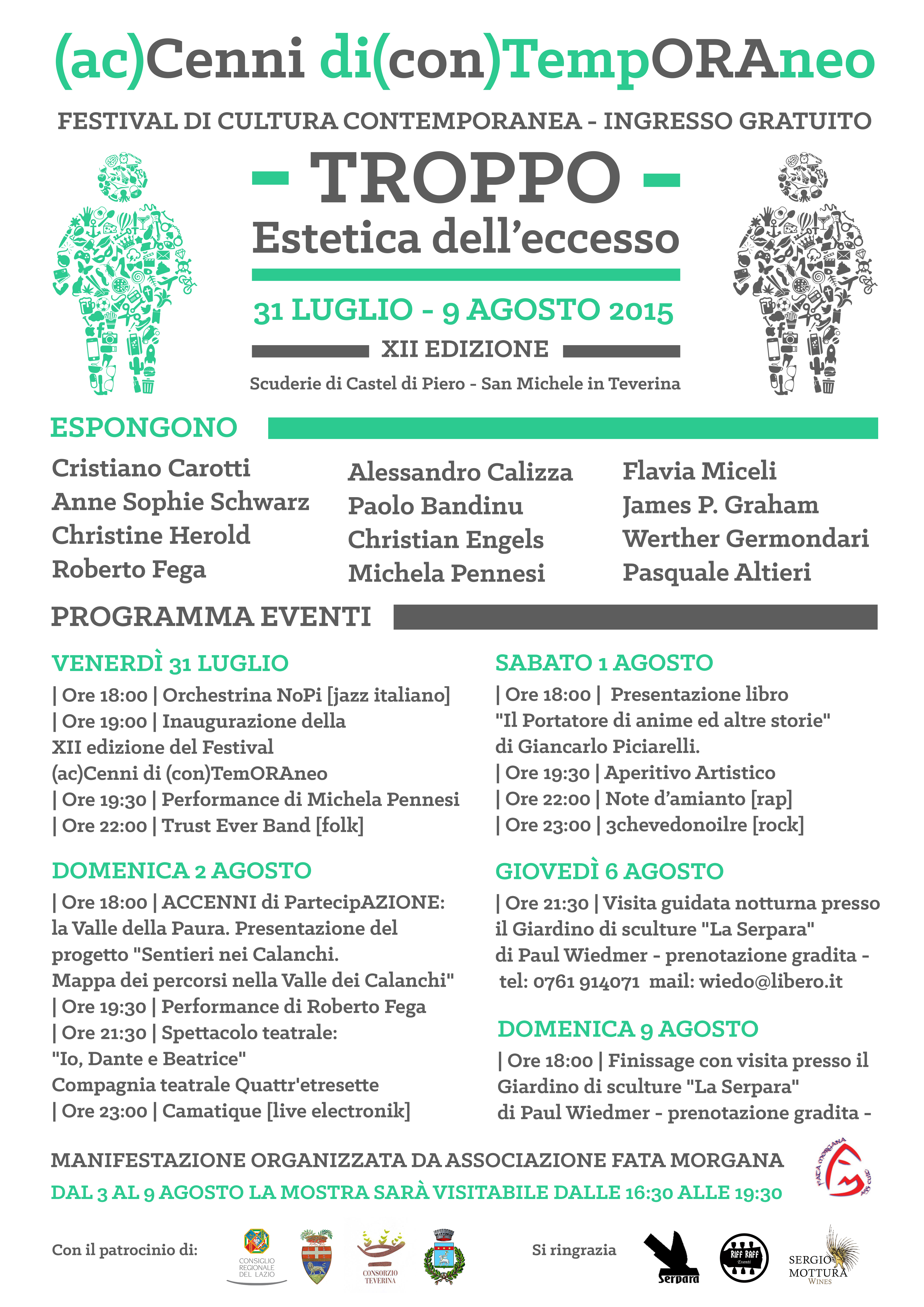 Da venerdì 31 luglio fino a domenica 9 agosto 2015‚ si terrà la XII edizione del Festival di Cultura Contemporanea (ac)Cenni di (con)TemORAneo‚ organizzata dall’Associazione Fata Morgana a San Michele in Teverina a Civitella d’Agliano (VT).