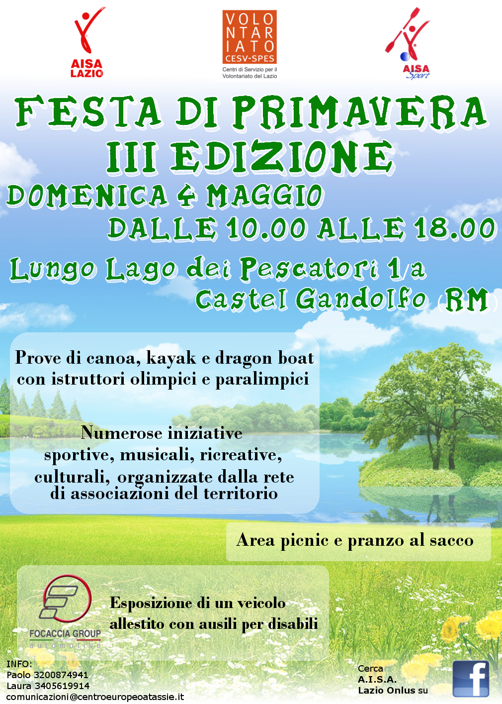 L’AISA Lazio Onlus‚ con il sostegno dei CSV del Lazio CESV e SPES‚ organizza per domenica 4 maggio 2014 la III edizione della Festa di Primavera.