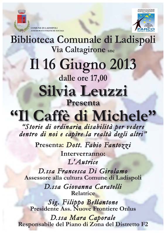 Si intitola Il Caffè di Michele‚ il testo di Silvia Leuzzi che verrà presentato domenica 16 giugno 2013 alla Biblioteca Comunale di Ladispoli in via Caltagirone snc.