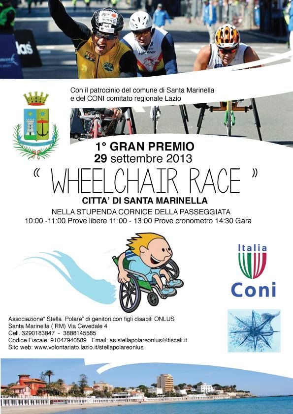 Al fine di sensibilizzare la popolazione sulle tematiche della disabilità‚ favorendo la pratica dello sport per tutti‚ l’Associazione Stella Polare Onlus organizza a Santa Marinella il primo Gran Premio Wheelchair Race con la collaborazione del Nucleo Sommozzatori di Santa Marinella e delle Associazioni di Volontariato locali e con il patrocinio del Comune di Santa Marinella e del CONI Comitato regionale Lazio. Si tratta di una gara di velocità ed abilità riservata a persone disabili su sedie a rotelle elettriche o manuali.