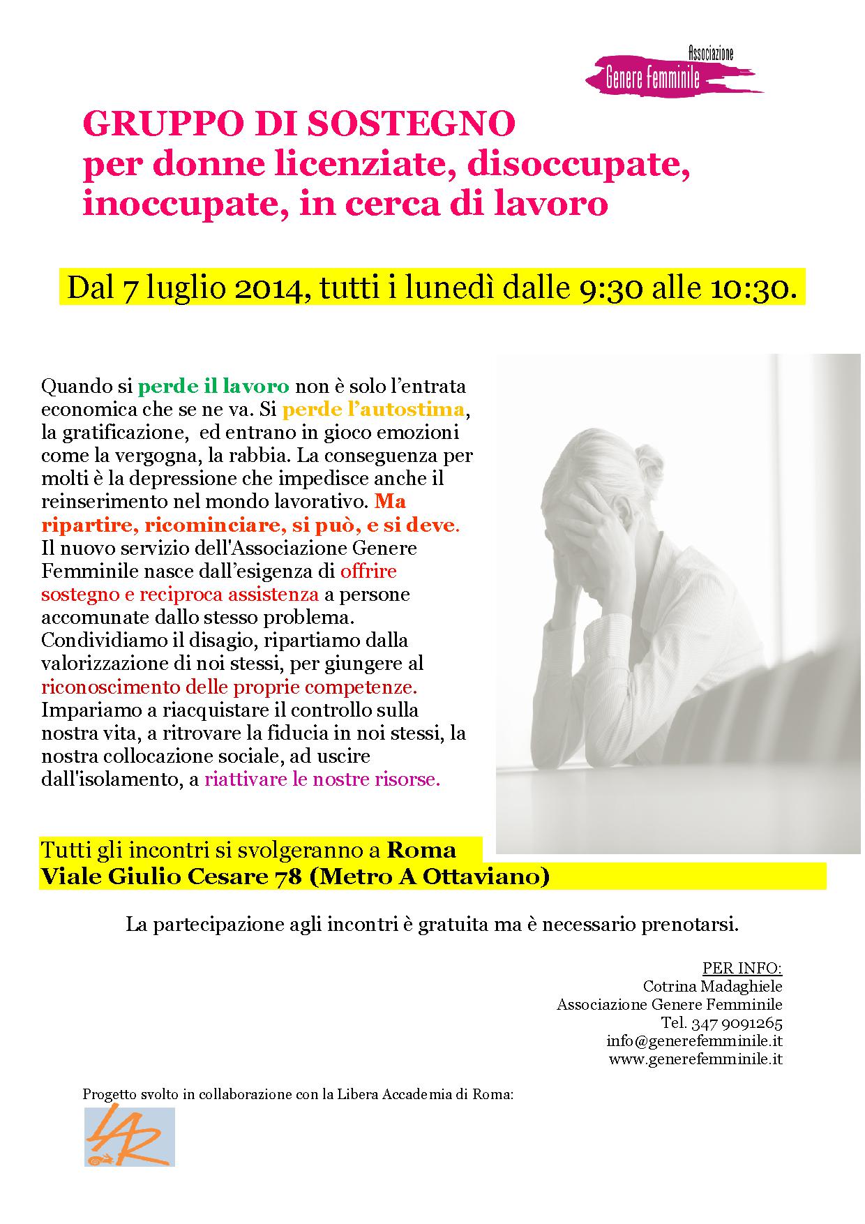 Da lunedì 7 luglio 2014 iniziano gli incontri del gruppo di sostegno per donne licenziate‚ disoccupate‚ inoccupate‚ un nuovo servizio promosso dell’associazione Genere Femminile.