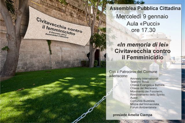 Si intitola In memori di lei l’Assemblea pubblica che si svolgerà mercoledì 9 gennaio 2013 a Civitavecchia e che vuole ribadire Civitavecchia città contro il femminicidio.
