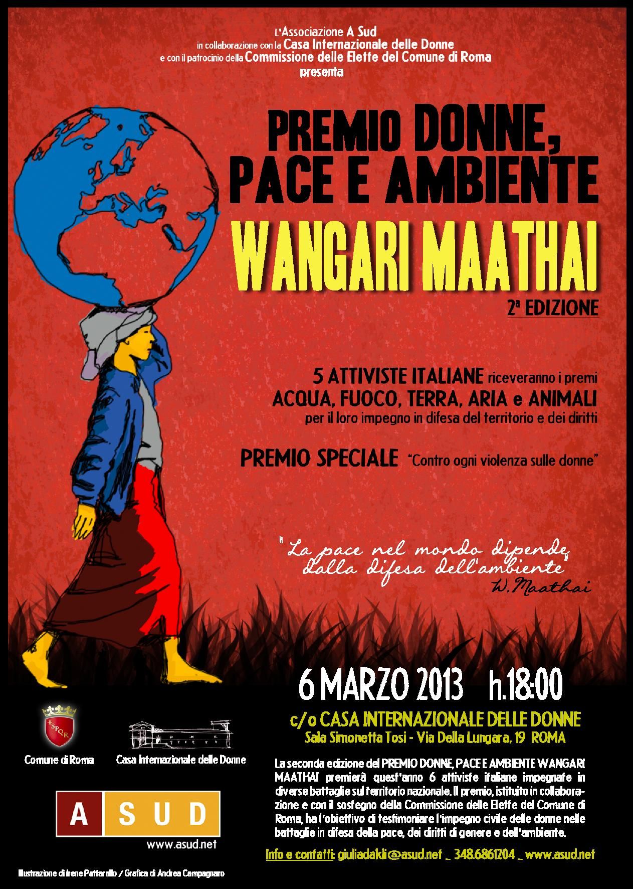L’associazione A Sud‚ in collaborazione con la Casa Internazionale delle Donne e con il sostegno della Commissione delle Elette del Comune di Roma‚ promuove la II edizione del Premio Donne‚ Pace e Ambiente WANGARI MAATHAI.