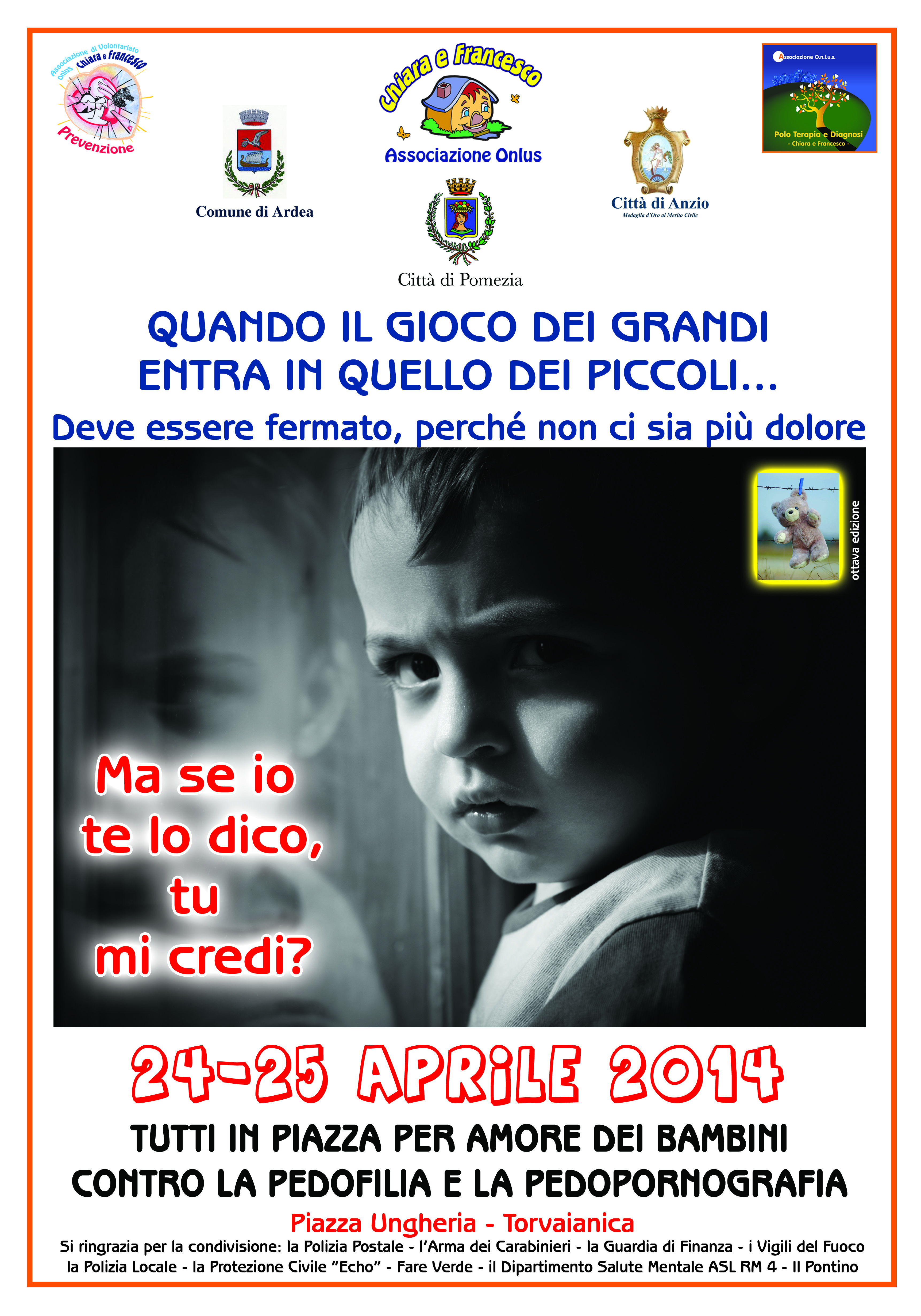 Il 24 e 25 aprile 2014 a Torvaianica (RM)‚ tutti in piazza contro la pedofilia e la pedopornografia. Appuntamento in Piazza Ungheria per l’VIII edizione di Quando il gioco dei grandi entra il quello dei piccoli….