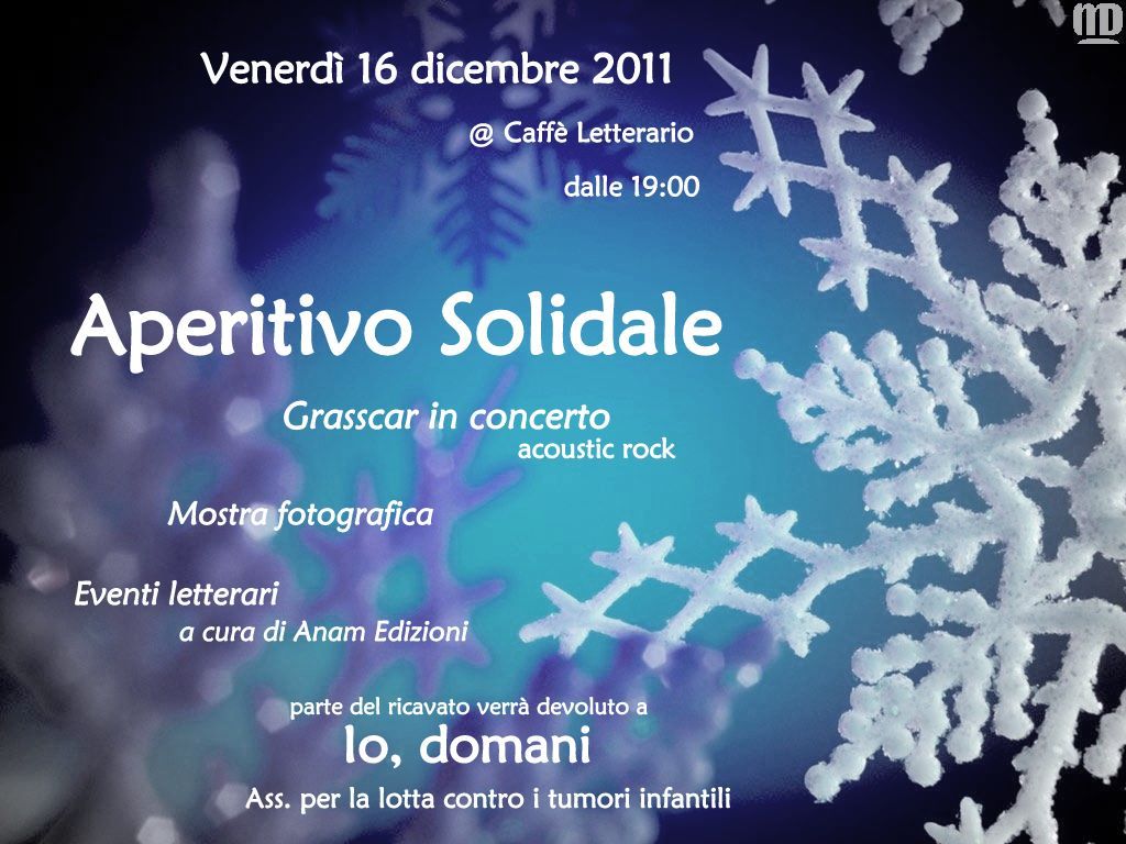 Venerdì 16 dicembre 2011 l’associazione Io‚ domani onlus proporrà un aperitivo solidale presso il Caffè Letterario‚ in via Ostiense 95‚ a partire dalle ore 19.00.