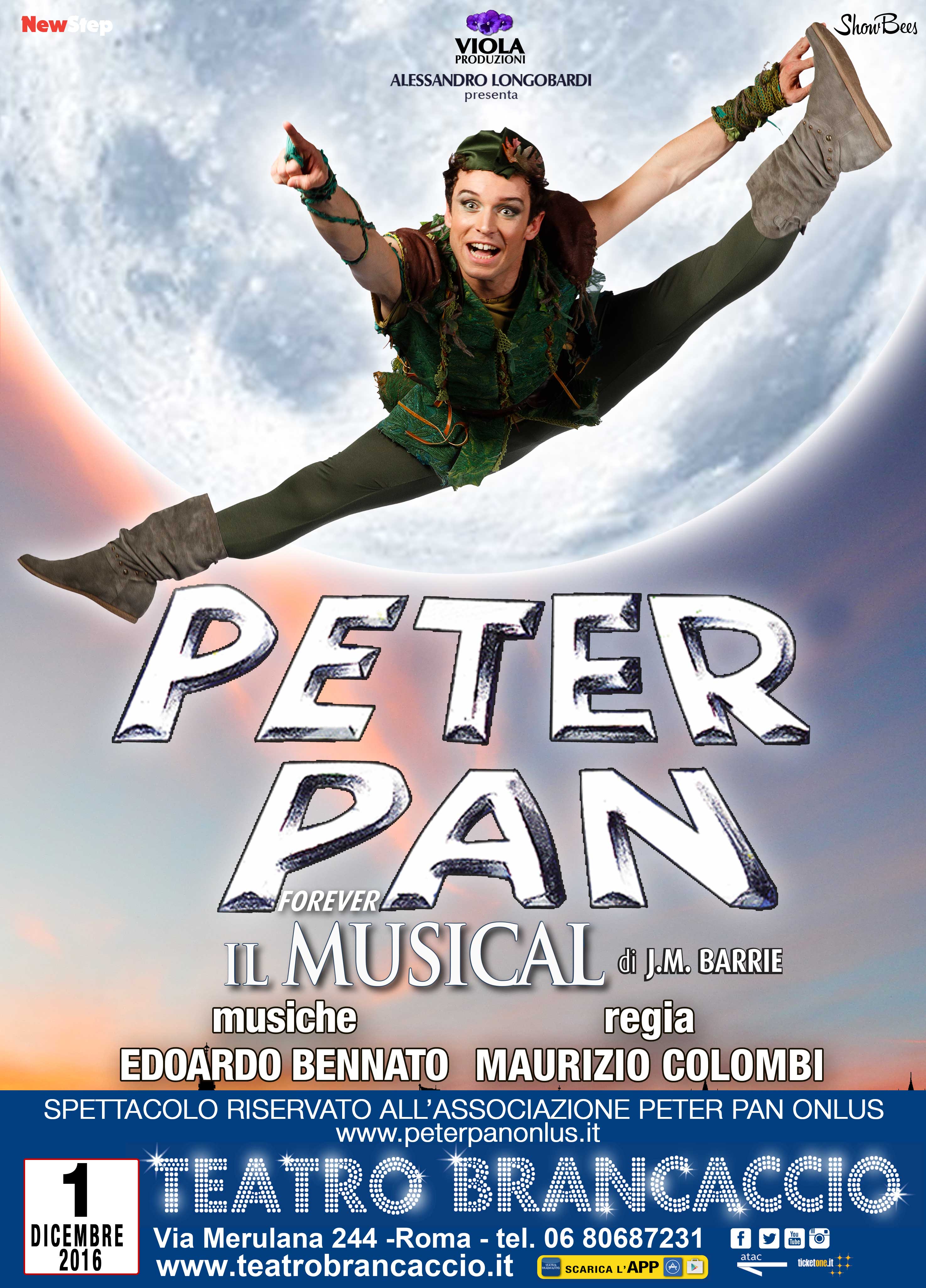 L’associazione Peter Pan Onlus invita allo spettacolo Peter Pan forever il Musical di J.M. Barrie‚ il giorno giovedì 1° dicembre 2016 alle 20.00 presso il Teatro Brancaccio in via Merulana‚ 244 a Roma. Lo spettacolo è prodotto da Viola Produzioni per la regia di Maurizio Colombi e le musiche di Edoardo Bennato. Per maggiori informazioni visitare il sito: www.peterpanonlus.it