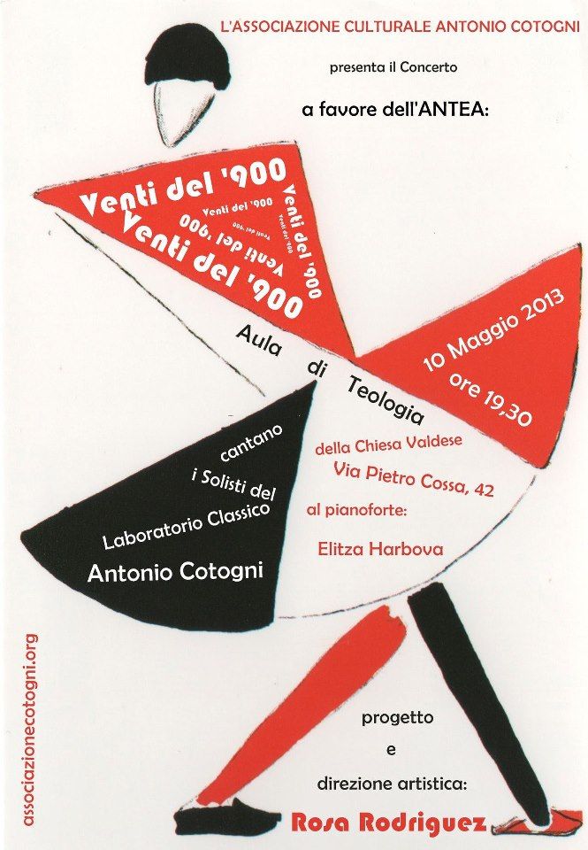 L’associazione culturale Antonio Cotogni presenta il Concerto intolato Venti del ’900 a favore dell’associazione Antea. Cantanto i solisti del Laboratorio Classico Antonio Cotogni.