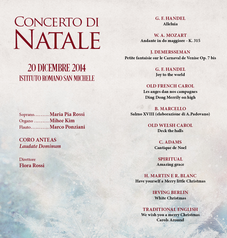 L’associazione Anteas invita al Concerto di Natale del Coro Anteas Laudate Dominum: appuntamento il 20 dicembre 2014 alle ore 17.00 presso l’Istituto Romano San Michele in Piazzale Antonio Tosti‚ 4 a Roma.