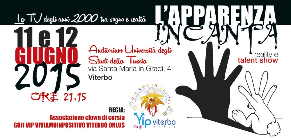 Appuntamento giovedì 11 e venerdì 12 giugno 2015 alle ore 21.15 presso l’Auditorium Santa Maria in Gradi dell’Università degli Studi della Tuscia in Via Sabotino 20‚ a Viterbo con lo spettacolo L’Apparenza Incanta. La tv degli anni 2000 tra sogni e realtà.