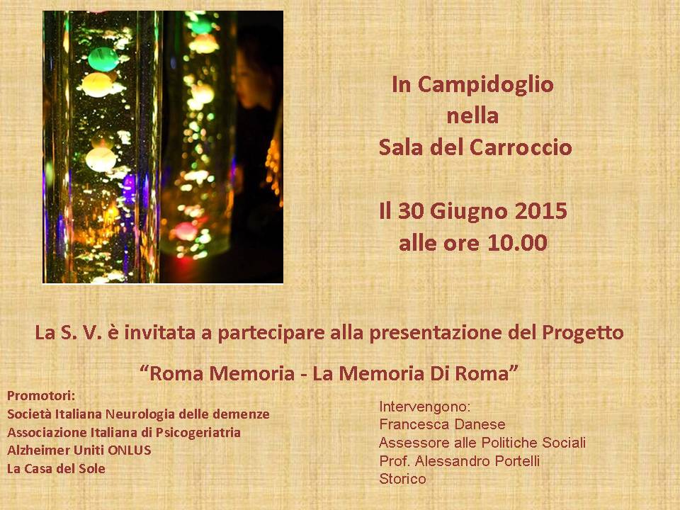 Martedì 30 giugno 2015 alle ore 10.00‚ si terrà presso la Sala del Cartoccio in Campidoglio a Roma la presentazione del progetto Roma Memoria –La Memoria Di Roma.