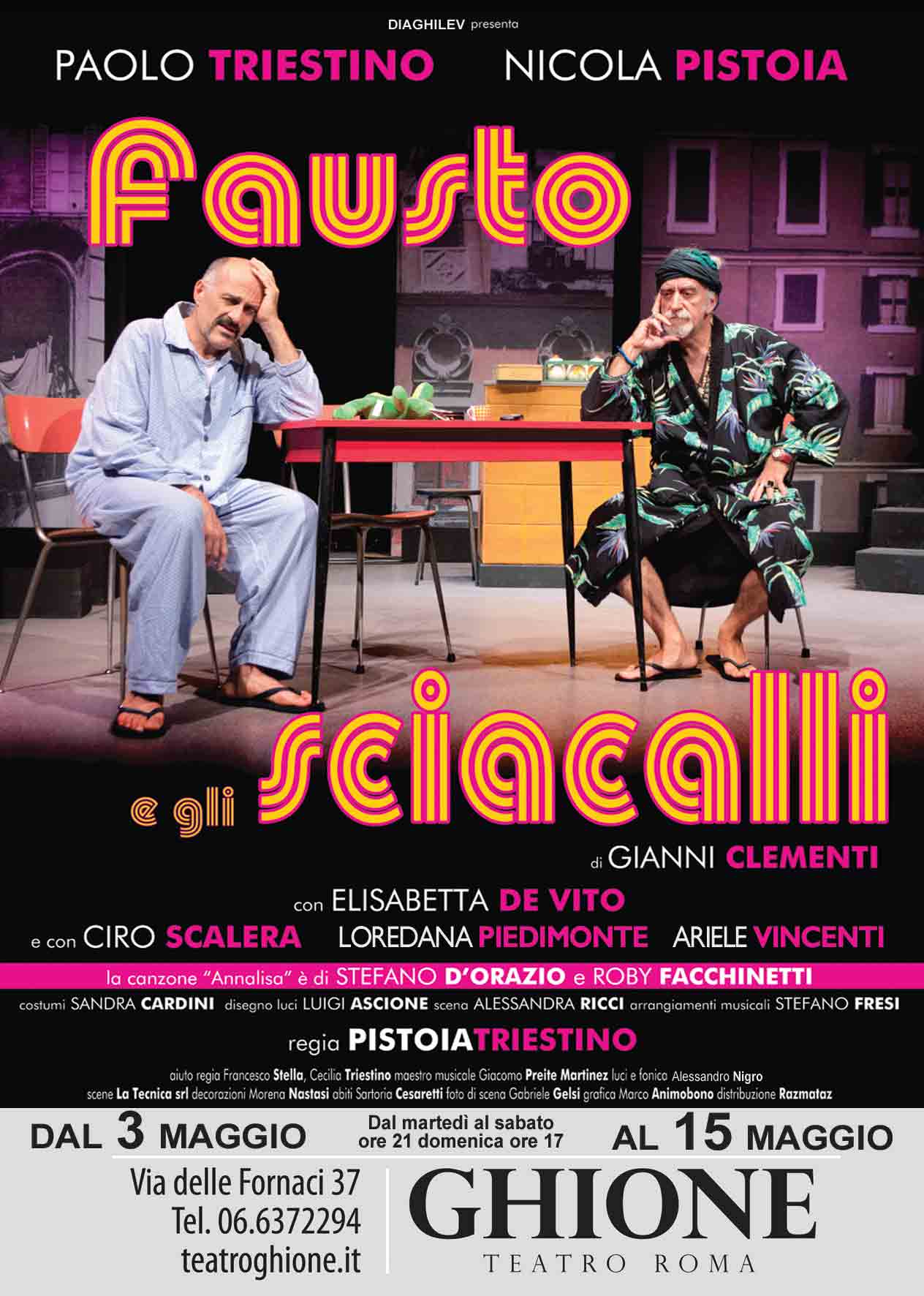 Martedì 10 maggio 2016 andrà in scena al Teatro Ghione Fausto e gli sciacalli‚ appuntamento alle ore 21.00 in via delle Fornaci‚ 37 a Roma.
