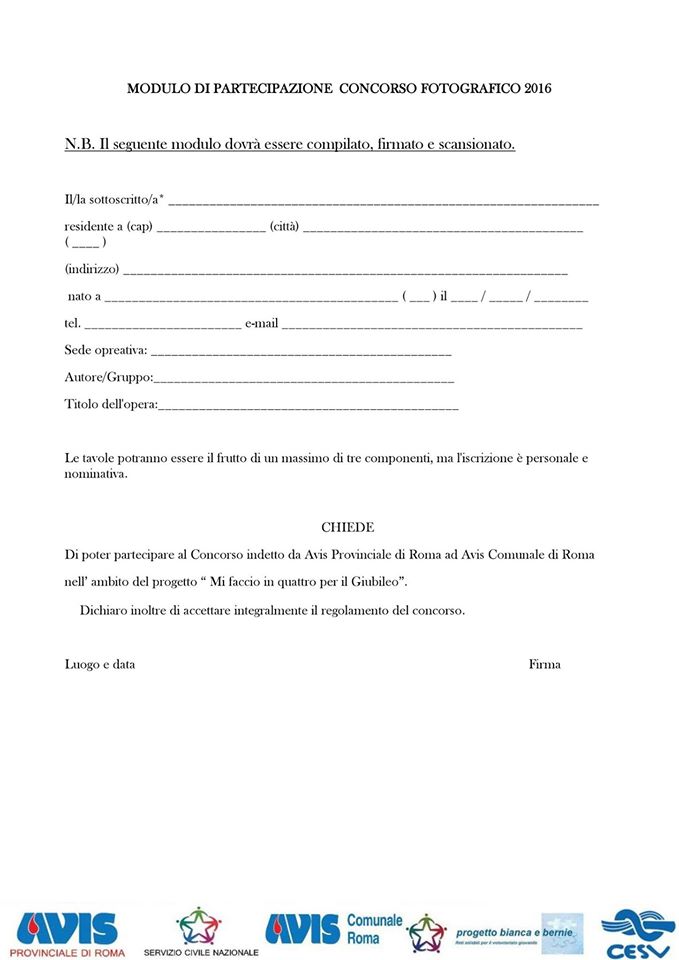 L’Avis Provinciale di Roma e l'Avis Comunale di Roma istituiscono il I° Bando di Concorso Fotografico dedicato ai ragazzi del Servizio Civile Regionale ed organizzato dai Volontari del progetto "Mi faccio in Quattro per il Giubileo".