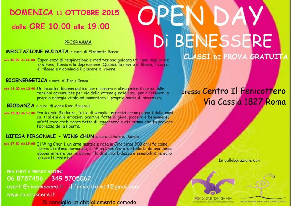 L’associazione Riconoscere onlus è lieta di invitarvi alla giornata benessere per sperimentare‚ gratuitamente‚ classi di prova di Bioenergetica‚ Biodanza‚ Meditazione e Difesa personale (Wing–Chun)