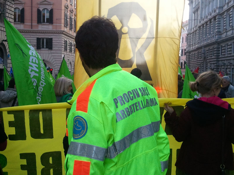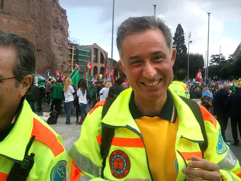 Un volontario al corteo per l'acqua pubblica a Roma del 26 marzo 2011