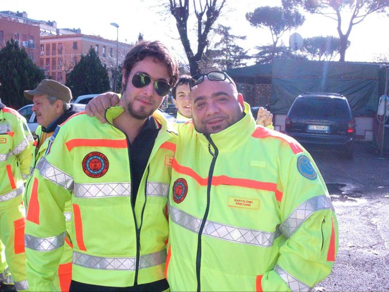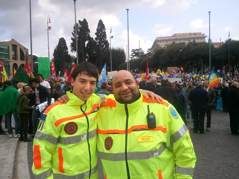 Abbraccio tra i presidenti di Brigata Volontaria Roma Prociv Arci e Brigata Garbatella