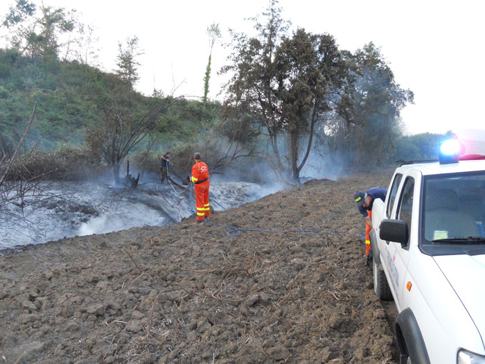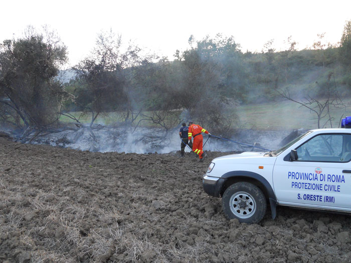 I volontari intervengono su un incendio boschivo in località Sant'Oreste nei pressi dell'uscita autostradale Ponzano-Soratte
