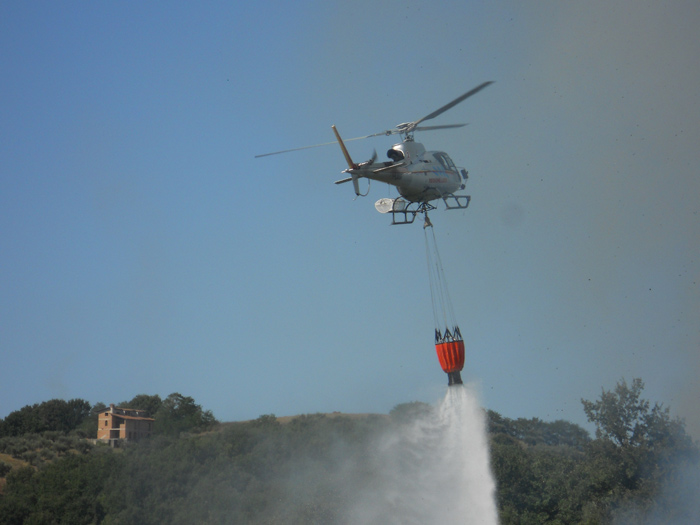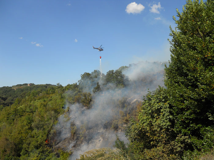 L'ausilio dell'elicottero per spegnere l'incendio di Capena