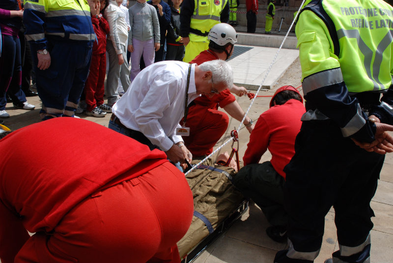 Dettaglio di tecnica di soccorso da parte degli operatori della Protezione Civile