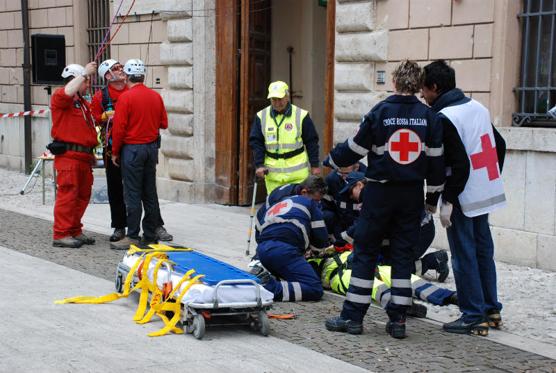 Tecnica di soccorso e rianimazione da parte del personale della Croce Rossa Italiana