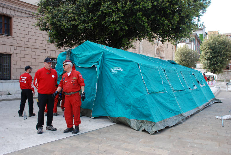 Dimostrazione e montaggio di una tenda di primo soccorso