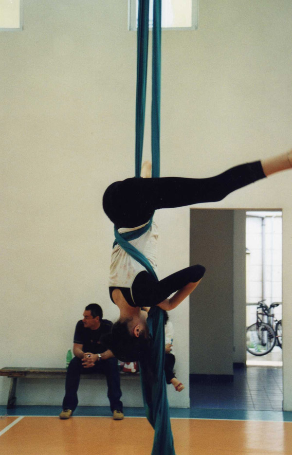 foto 6Un’insolita discesa dal tessuto aereo eseguita in palestra