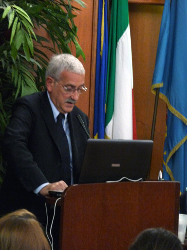 Il professor Francesco Cognetti, Responsabile del Dipartimento di Oncologia dell’Istituto Nazionale Tumori Regina Elena di Roma, illustra il progetto della rete oncologica regionale.